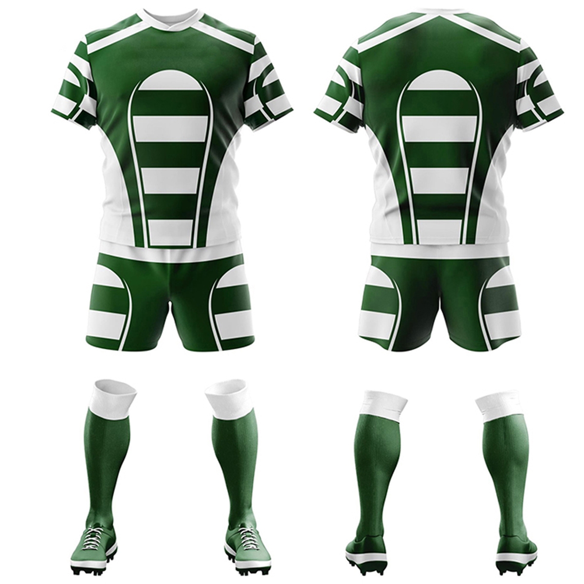 Product Name: Rugby uniform Material: 100%polyester And Customized Features: Anti-Bacterial, Anti-UV, Breathable, Plus Size, QUICK DRY Technics: Embroidered, Printed, Sublimated Color: As per Customer demand Size: Range of sizes available